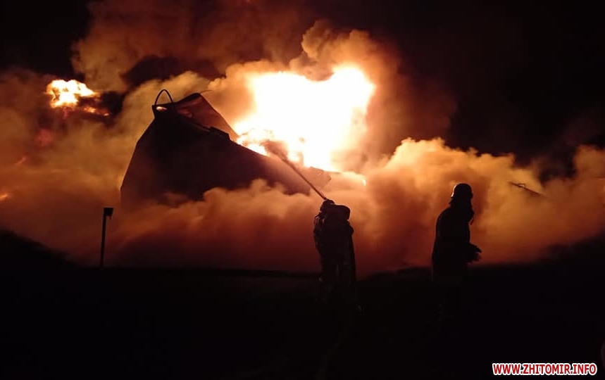 У смт Черняхів сталося загоряння двох напівпорожніх резервуарів (ємність уточнюється). З поруч розташованих приватних житлових будинків проведено евакуацію мешканців. Попередньо жертв та постраждалих немає. До гасіння залучено 24 осіб та 5 од. техніки ДСНС.