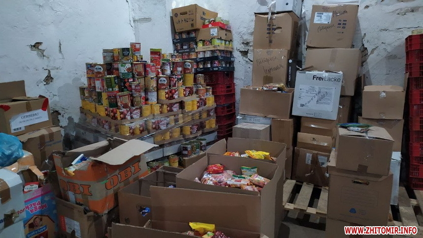 Як повідомляв Житомир.info, 2 березня міська рада інформувала, що Житомир отримав гуманітарну допомогу від польського міста-побратима Плоцька. 4 березня Житомир отримав допомогу від австрійських друзів. 8 березня Житомир отримав гуманітарну допомогу з Данії, від громадян та дитячого магазину, і чергову партію допомоги з Польщі та Німеччини. Бренд «Kachorovska atelier» разом з іншими житомирськими виробниками безоплатно шиє берці для наших хлопців та дівчат з територіальної оборони. Також житомирські волонтери збирають медикаменти для лікарень, тероборони та ЗСУ та цілодобово приймають і розподіляють гуманітарну допомогу, формуючи набори для військових та переселенців.