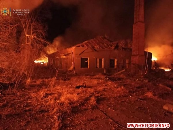 «Нічний удар ворога по Житомирщині. 02:40 14 березня у с. Ставище Житомирського району внаслідок ракетного удару по адміністративним будівлям постраждало 4 особи та попередньо зруйновано 7 будівель, пошкоджено 2 житлових будинки. У зруйнованих будівлях виникли пожежі. Для гасіння пожежі та проведення пошуково-рятувальних робіт залучено 12 чоловік особового складу та 2 одиниці техніки. Роботи щодо пошуку постраждалих продовжуються», – йдеться у повідомленні.