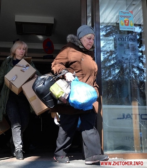 У Житомирі містянам почали видавати гуманітарну допомогу, відповідно до попередньо сформованих заявок. 15 березня набори мають видати для майже 1000 людей.
