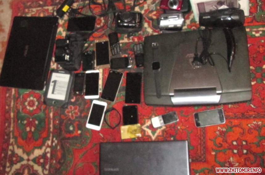 У ході досудового слідства встановлено скоєння фігурантом справи й інших злочинів – серії крадіжок з осель жителів окупованого Ірпеня. З тимчасового місця проживання підозрюваного, у Бердичівському районі, вилучено значну кількість награбованого чужого майна: одяг, ноутбуки, мобільні телефони, фотоапарати, електроінструмент та різну побутову техніку.