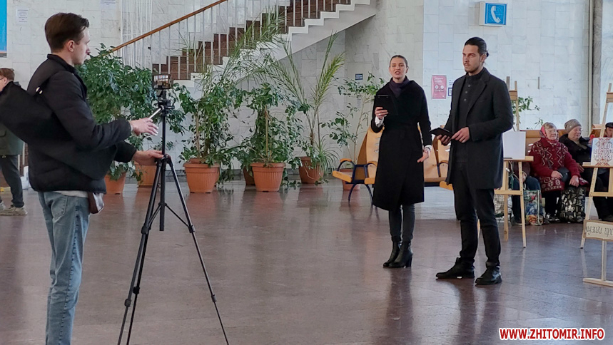 Нещодавно у приміщенні вокзалу вже лунала музика від артистів Житомирського обласного українського музично-драматичного театру ім. Івана Кочерги.