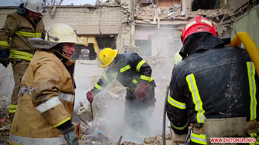 «Коли ми прибули туди, все було більш схоже на постапокаліптичний малюнок: зліва зруйновані вщент будинки, все горить, справа лікарні, гуртожиток повністю без вікон, крики людей. Звісно, ми прибули і одразу почали проводити евакуацію населення, потім розбір конструкції, в першу чергу там, де, за наявною інформацією від тих людей, які там перебували, могли знаходиться люди. Після цього ми вже приступили до ліквідації самої пожежі. Потрібно розуміти, коли ти приїжджаєш на місце виклику, в тебе відповідальність не тільки за себе, а за весь особовий склад, потрібно підготувати їм найбільш безпечні умови праці. Всі, мабуть, може, десь хтось більш глибше, хтось менш глибше, в душі боялись, але коли ти працюєш в ДСНС, ти маєш розуміти, що коли йдеш на цю роботу, можуть бути ризики», — розповідає начальник караулу 2-ої ДПРЧ 1-го ДПРЗ ГУ ДСНС України Житомирській області Артем Задерейко.