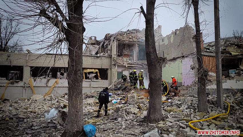 Вранці 4 березня в центрі Житомира російські окупанти обстріляли з повітря школу. Рятувальники евакуювали зі зруйнованої будівлі ліцею № 25 на Малій Бердичівській 5 людей. Повідомлялося, що, за попередніми даними, внаслідок потрапляння боєприпасу жертв і постраждалих немає. Відео наслідків авіаудару по ліцею – тут.