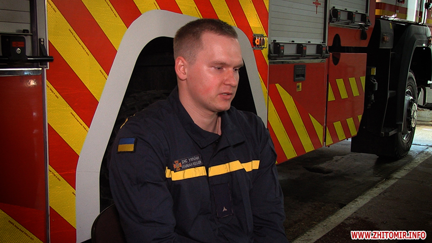 «Приїхали на нафтобазу, почали гасити, були дуже великі хлопки нафтопродуктів, загорання, почали подавали вогнегасні речовини, але, самі розумієте, по цих масштабах – це дуже було складно. Було декілька напрямків для гасіння пожежі, випадали стволи на охолодження ємностей з паливно-мастильними матеріалами. Пройшло, певно, декілька годин, після того ми побачили, як в цистернах почали закипати нафтопродукти. Після того виник дуже великий вибух. Ми покидали все своє оснащення, щоб врятуватися, бо тією ударною хвилею нас могло накрити, і всі могли згоріти заживо. На щастя, на той час не було поблизу житлових будинків і ніхто з мирних жителів не постраждав», — розповідає командир відділення 2-ої ДПРЧ 1-го ДПРЗ ГУ ДСНС України Житомирській області Михайло Нарубалюк.