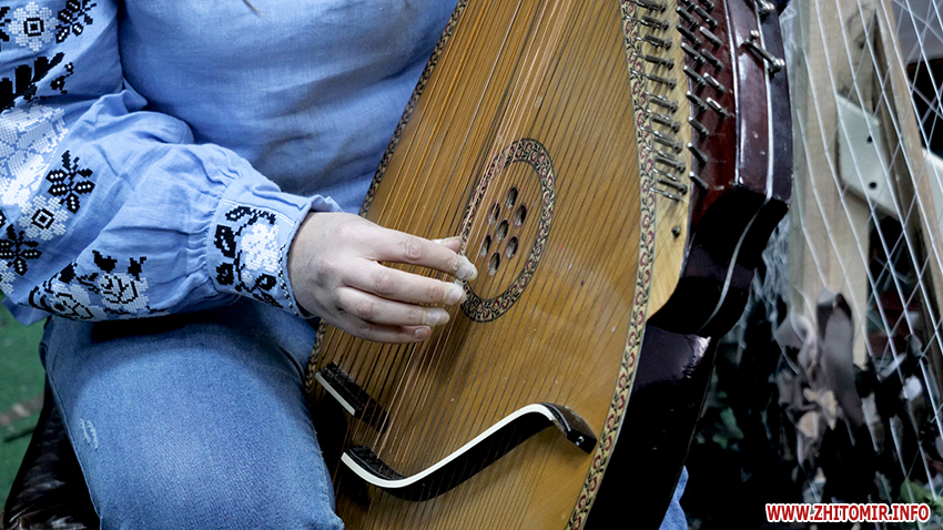 Житомирська бандуристка Світлана Ніконорова співає та грає для військових, волонтерів, переселенців та пересічних містян. Сьогодні вона піднімає настій житомирянам, які плетуть маскувальні сітки.