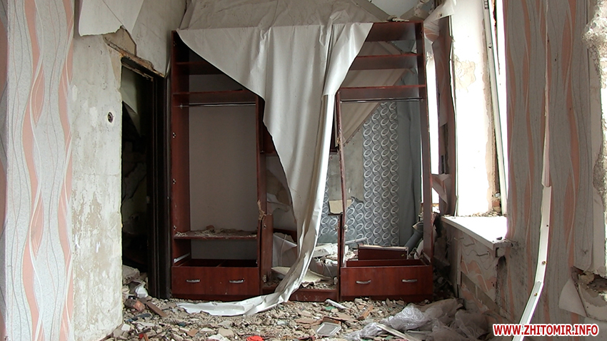 Вечір 8 березня 2022 року запам’ятається жителям Корбутівки назавжди. В той день окупанти вкотре обстріляли Житомир та завдали удар по гуртожитку. Місцевий житель Олег показує, який вигляд має його житло після авіаудару.