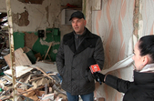 «Я тут проживав у цій квартирі до певного періоду, тобто до 8 березня, до того часу, коли ці орки не скинули сюди бомбу. Звичайно, боляче дивитися на це все. Ми неодноразово сюди приїжджали та дивилися. Це все, що залишилося від наших розвалин від нашого будинку. Тут була кімната, тут була стіна. Добре, що на момент вибуху у квартирі нікого не було. Ви бачите, що тут вже стіни немає через вибух, який був там 15-12 метрів далі. На жаль, люди, які там були загинули, кілька людей. Тут, що залишилося від стіни, від меблів. В цій кімнаті нічого не вціліло, частина кухні вціліла, холодильник і електроплита, з речей – все пошкоджене, побите, залите. На жаль, проживати тут недоцільно, бо нереально його тут відновити», – розповідає Олег.
