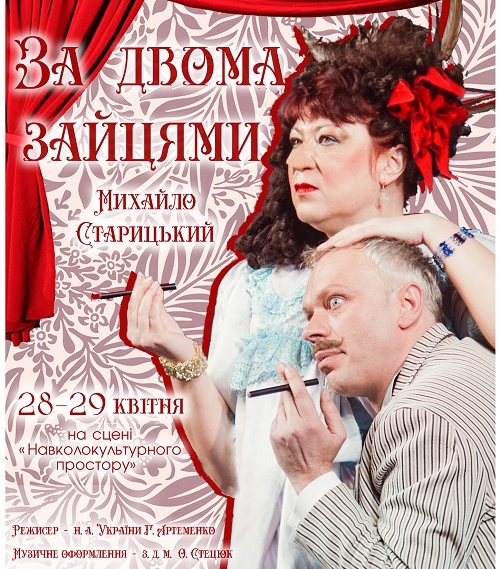Отже, 28 та 29 квітня на сцені «Навколокультурного простору» відбудеться музична комедія «За двома зайцями» М. Старицького, муз. О. Стецюка (благодійна вистава для переселенців та сімей військовослужбовців).