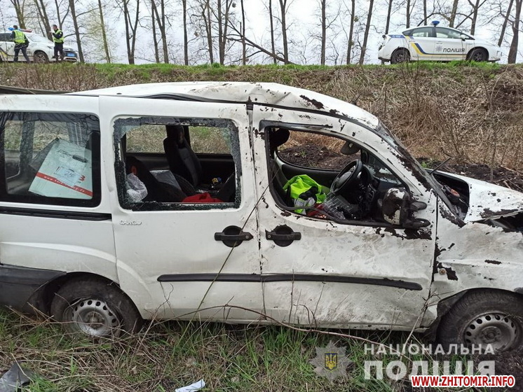 «Дорожньо-транспортна пригода сталася 26 квітня близько 10:50 на 195 км автодороги Виступовичі – Житомир – Могилів Подільський, поблизу с. Зарічани Житомирського району. Попередньо, водій автомобіля «Fiat Doblo», 39-річний бердичівлянин, рухаючись автошляхом, не впорався з керуванням, з’їхав у кювет, де автомобіль перекинувся. У результаті ДТП водій отримав травми, його доставили до Житомирської обласної клінічної лікарні», - йдеться у повідомленні.
