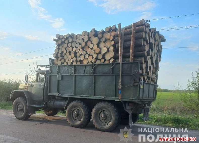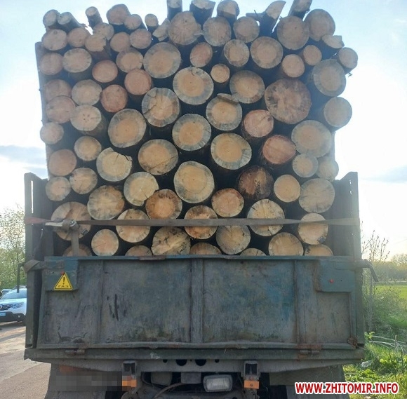 «3 травня у с. Левкові Житомирського району поліцейські зупинили автомобіль ЗІЛ для перевірки. У вантажівці виявили соснові колоди. За кермом перебував 55-річний житель Березівської громади. Документів, які б підтверджували законність лісопродукції, чоловік не надав», – йдеться у повідомленні.