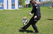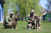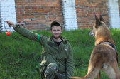 А ще підростає молода зміна з цуценят. Цуценят до 4-5 місяців кінологи тримають вдома, коли вони підростають, їх приводять у центр займатися, а з однорічного віку собаки здають на сертифікат і починають працювати. Вже скоро почнуть працювати четверо цуценят, яких зараз готують по напрямках «слідова робота», «вибухівка» та «наркотики».