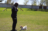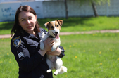 Ще одна з собак Аліни – Харлі. Харлі ще цуценя, проте вже вправно виконує всі команди і вміє шукати наркотики