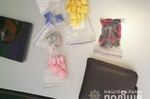 Під час невідкладних процесуальних дій поліцейські виявили в його автомобілі ЗАЗ Daewoo зіп-пакети з кількома десятками кольорових пакуночків різної ваги та згортки з пігулками.