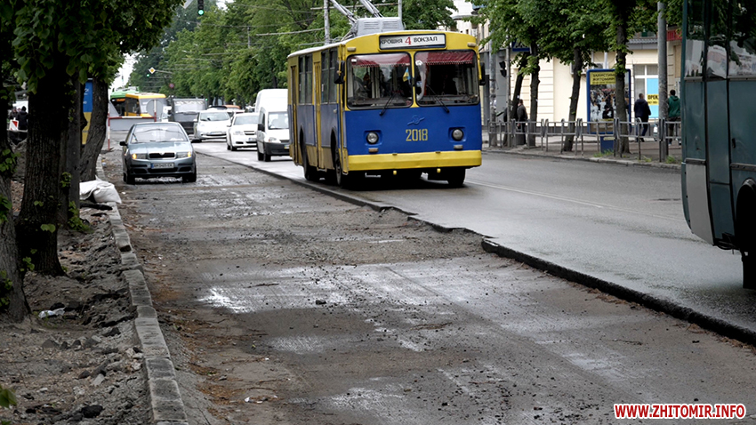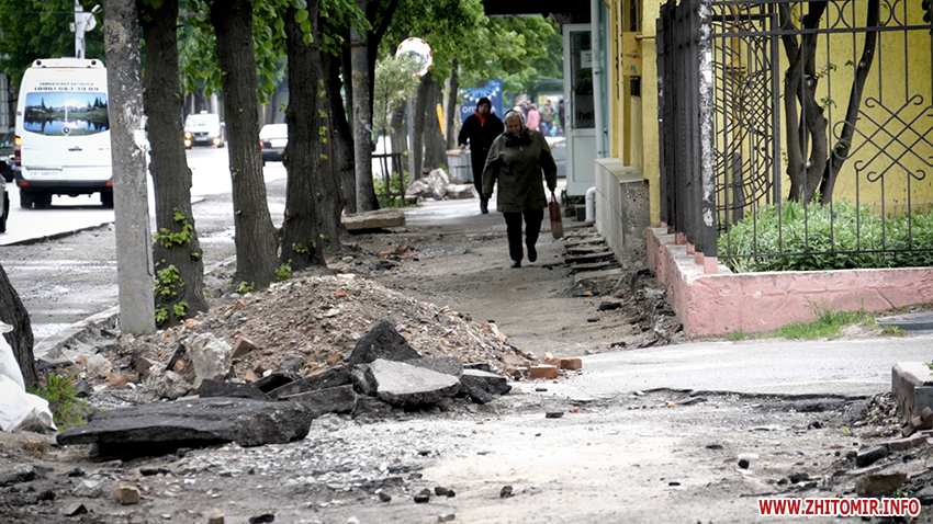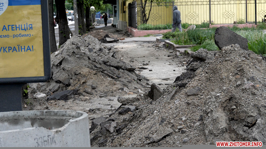 Цього року у Житомирі мали капітально відремонтувати вулицю Київську. На ділянці від Хлібної до Небесної сотні роботи розпочали 16 лютого, і, як зазначив заступник Житомирського міського голови Олександр Шевчук, до середини травня могли зробити два квартали, проте роботи були призупинені.