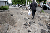 На тротуарі купи зрізаного асфальту і будівельні матеріали, а одна зі смуг на проїзній частині відфрезерована – такий вигляд сьогодні має ділянка на якій проводилися роботи.