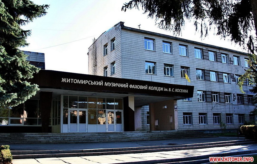 Будівля нашого освітнього закладу знаходиться на вулиці, яка носить ім'я Олександра Пушкіна. Водночас геніальний український музикант - композитор, педагог, громадський діяч Віктор Степанович Косенко, який 10 років свого життя присвятив культурному зростанню Житомира, на жаль, досі не вшанований належним чином в нашому місті. Віктор Косенко викладав у нашому музичному коледжі, влаштовував благодійні й просвітницькі концерти для житомирян, на його запрошення до міста з гастролями приїздили відомі музиканти світу, більшість найкращих творів композитора були написані саме в Житомирі! Завдяки зусиллям В.С. Косенка та його творчого оточення Житомир став культурною столицею Волинської губернії 20-х років ХХ століття.