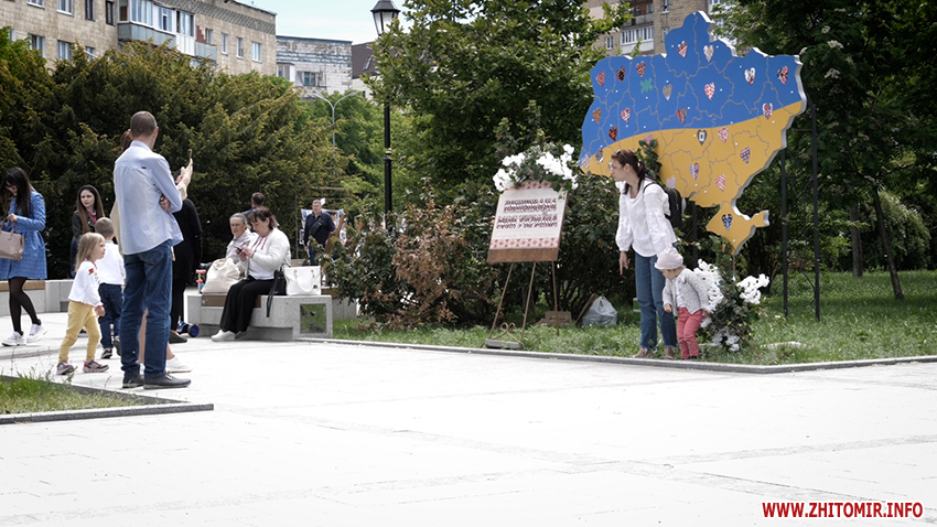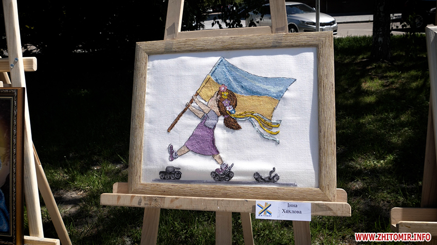 До міжнародного свята у місті вишивали дві картини з воєнним логотипом Житомира. Меншу картину сьогодні передали міській раді, а велику, розміром 1,5×1,5 м, планують завершити за два тижні. До створення картин вже долучилося понад 300 містян, наймолодшому з них – чотири роки.