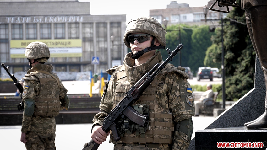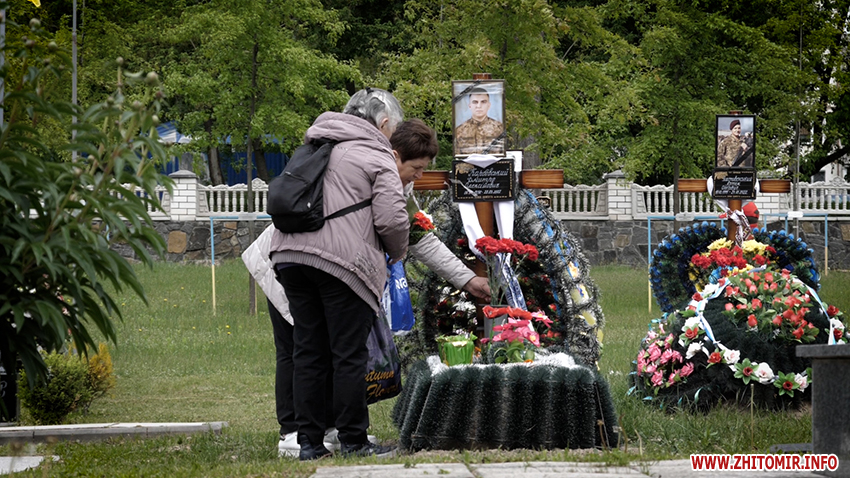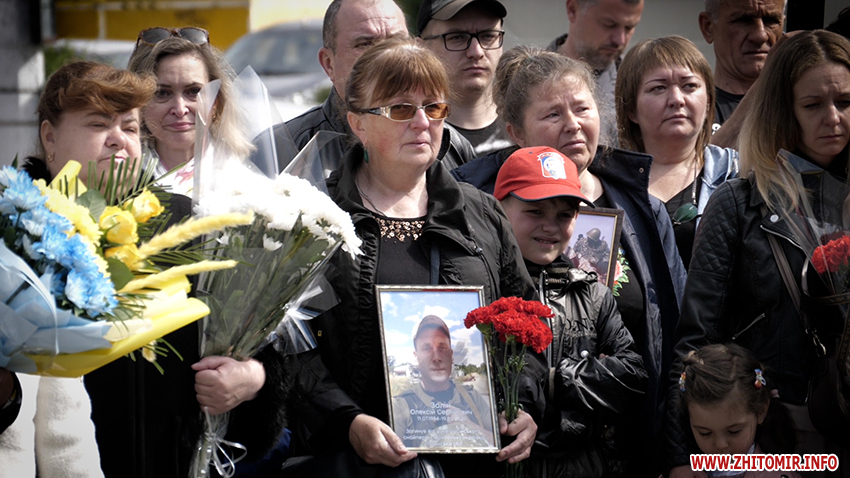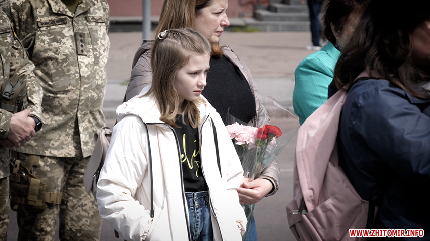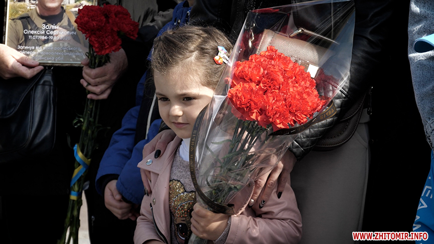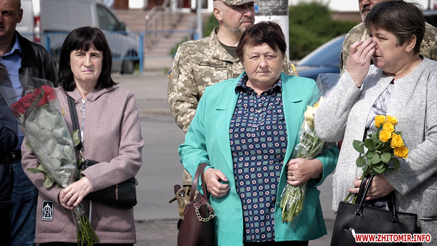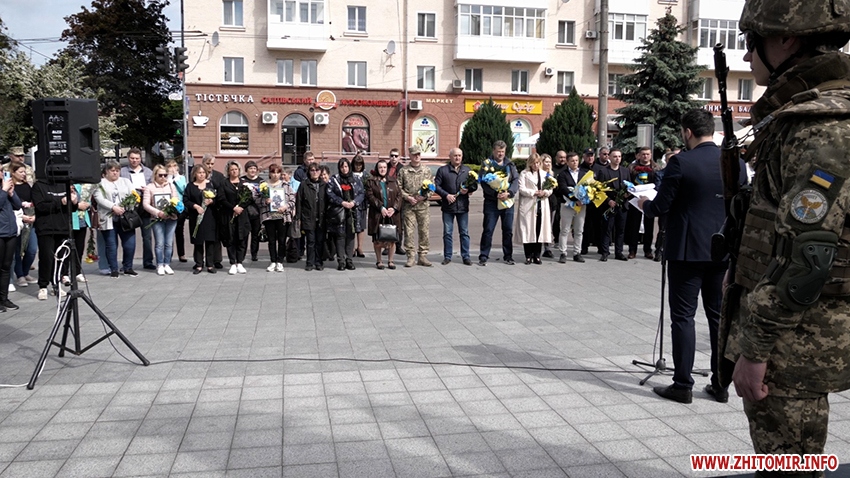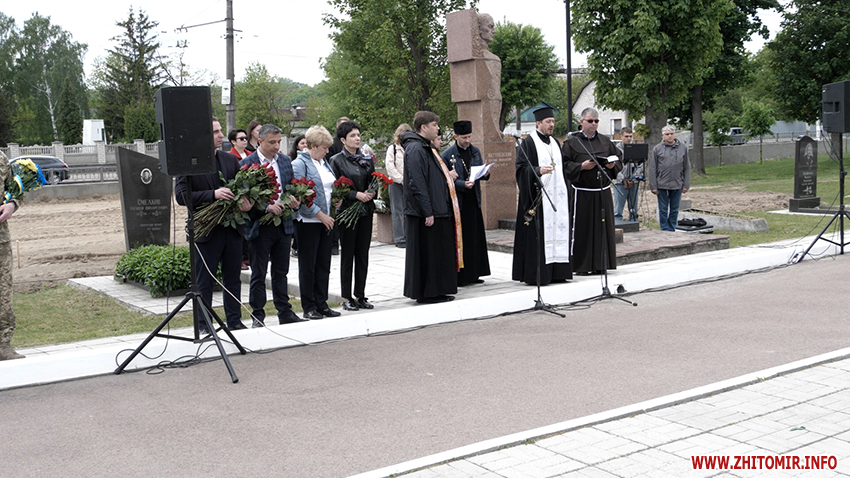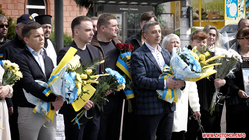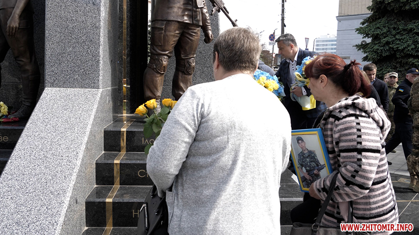 Біля пам'ятної композиції «Захисникам України у війні з російським агресором» зібралися рідні загиблих воїнів, військовослужбовці, влада та пересічні житомиряни. Героїв згадали поіменно та вшанували молитвою.