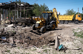 На Богунії у Житомирі 24 травня комунальники розпочали прибирати уламки зруйнованих будинків, які постраждали внаслідок російських авіаударів у березні.