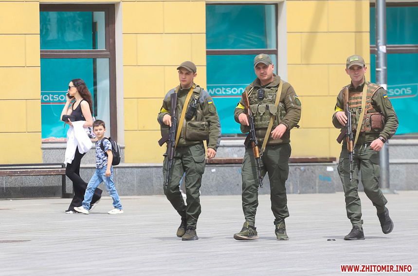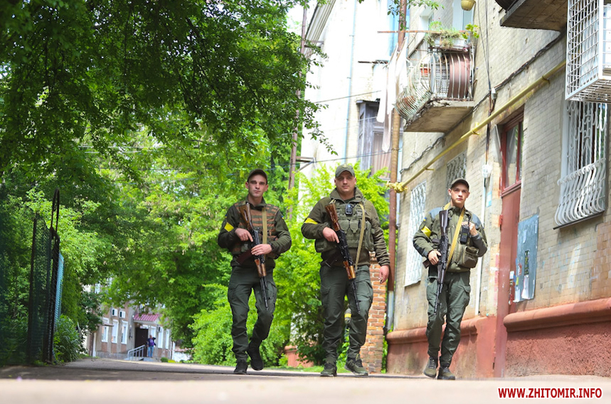 За будь-якої погоди на міських вулицях можна побачити патрулі у складі трьох бійців Національної гвардії України. У службовому авто або пішки, іноді у компанії службових собак, правоохоронці бережуть безпеку мирних міських жителів Житомира.