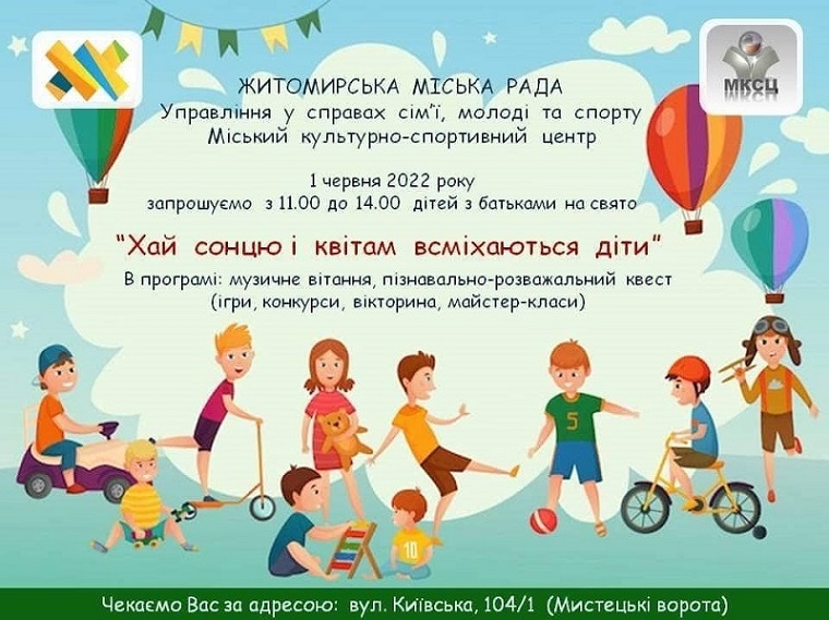 1 червня – Міжнародний день захисту дітей. З цієї нагоди у Житомирі заплановані загальноміські заходи.