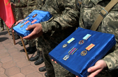 Попрощатися з військовими прийшли родичі, військові побратими та містяни.