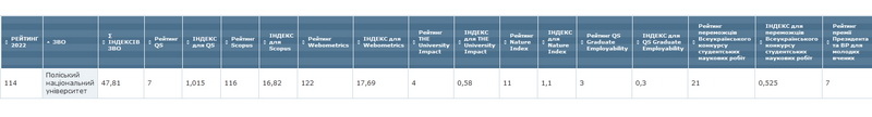 Поліський національний університет (раніше – ЖНАЕУ) – 114 місце (в 2021 – 103 місце).