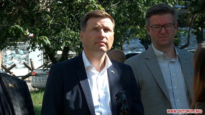 Перший віцеспікер парламенту Естонії Ханно Певкур та Надзвичайний і Повноважний Посол Естонської Республіки в Україні Каймо Кууск оглянули у Житомирі 25 ліцей, який зруйновано внаслідок авіаудару, що завдала росія. Ханно Певкур назвав дії росії варварством та запевнив, що Естонія готова допомогти Житомирщині у відбудові.