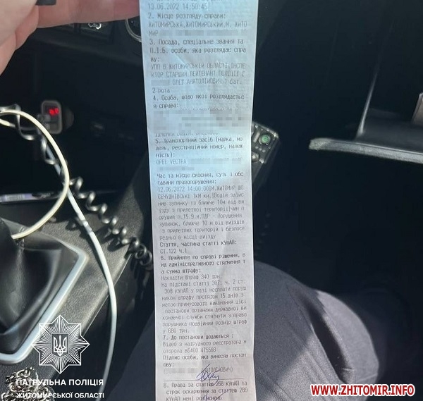 Про це ввечері 14 червня повідомила пресслужба патрульної поліції Житомирської області.