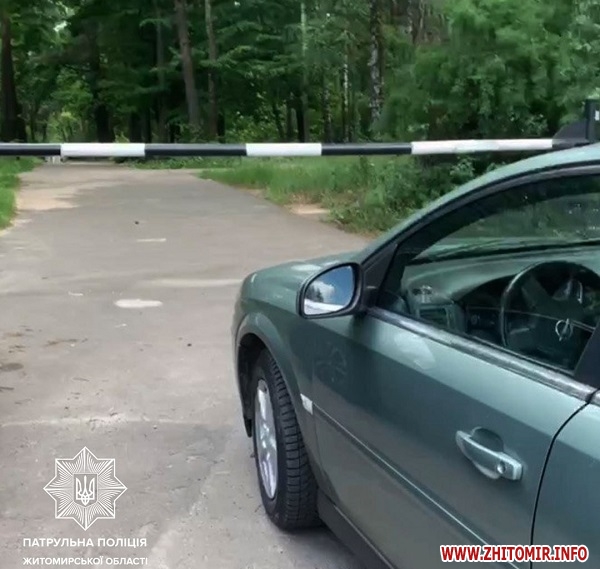 У Житомирі патрульні розшукали водія, який припаркував автомобіль, заблокувавши заїзд/виїзд на територію гідропарку. На водія винесли постанову.