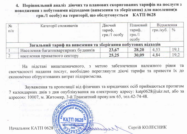 КАПТ-0628 має намір підвищити тариф на 19%. Детальну інформацію про намір щодо зміни тарифу читайте тут.