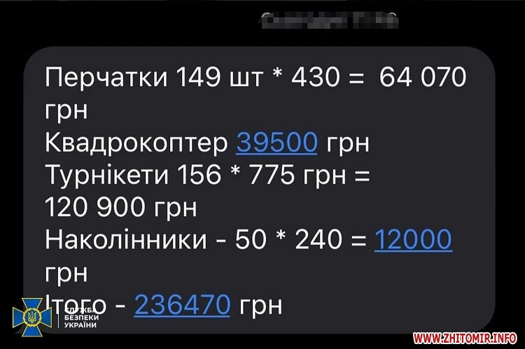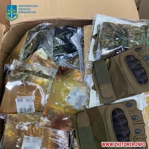 У Житомирі 27 червня правоохоронці затримали голову благодійного фонду після продажу ним засобів індивідуального захисту для військових вартістю близько 236 тисяч гривень. Загалом же сума «замовлення» для продажу становила майже пів мільйона гривень. За наявною інформацією, товари надійшли в Україну як гуманітарна допомога і призначались нашим захисникам.