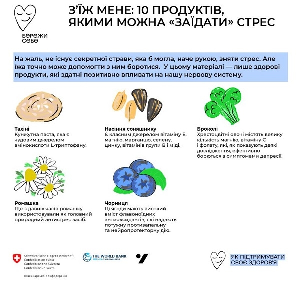 Про 10 продуктів, якими можна «заїдати стрес», 11 липня розповіли у Телеграм-каналі Міністерства охорони здоров’я України «Бережи себе».