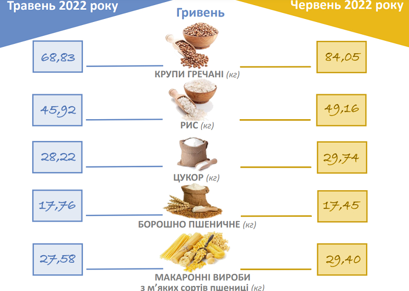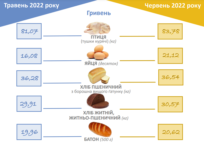 Як змінилися середні споживчі ціни на продукти харчування, 14 липня статистики показали у презентації.