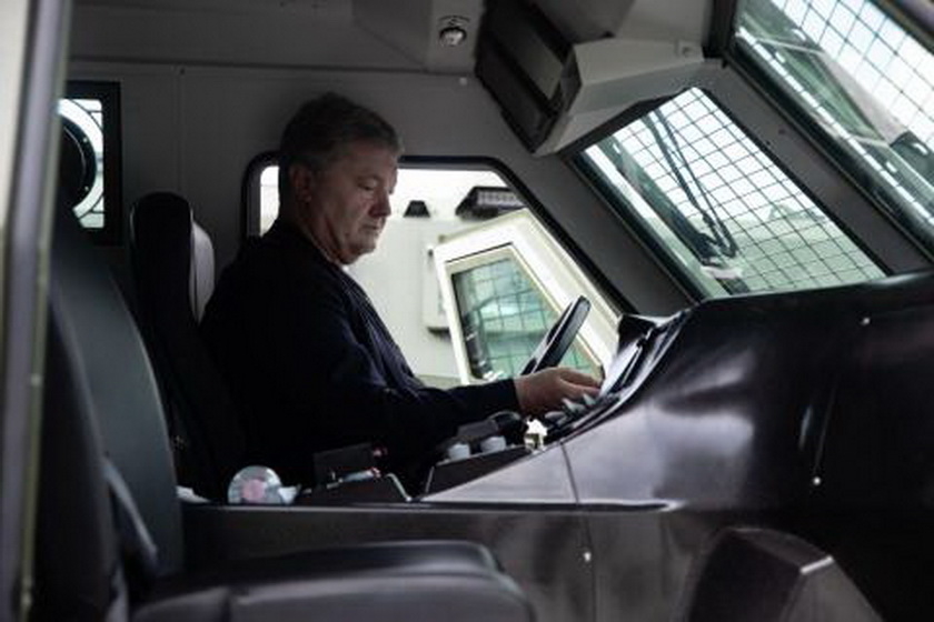 «Тут є крута тепловізійна система, лазерні дальноміри, автоматична коробка, броньовані двері, кондиціонер, і навіть USB сокети для того, щоб працювати із системами комунікації. Все у найкращому вигляді. І все робиться для наших воїнів, які сьогодні чекають з нетерпінням наше озброєння», – показує Порошенко «начинку» броньовика.