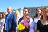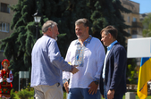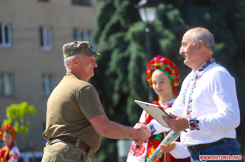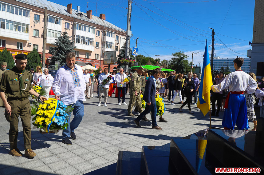 Урочистості продовжилися на Замковій горі. Тут біля пам'ятного знаку на честь заснування Житомира організували театралізовану виставу-екскурс в історію України.