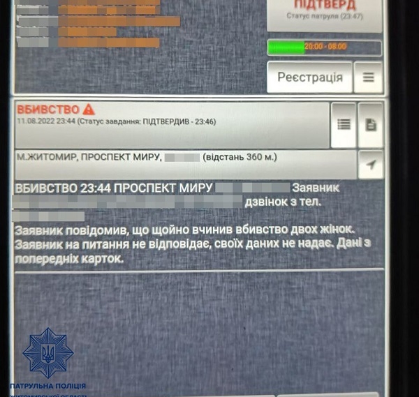 Уночі 12 серпня житомирські патрульні отримали виклик про подвійне вбивство на проспекті Миру. Миттєво прибувши за вказаною адресою, правоохоронці побачили лише п’яного чоловіка. Він пояснив, що хотів перевірити, як швидко поліція реагує на такі виклики. За хибне повідомлення «жартівника» притягнули до адмінвідповідальності, винісши постанову.