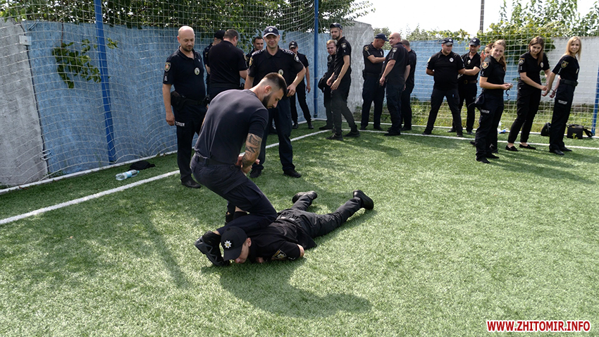 16 серпня у Житомирі поліцейські вдосконалювали свої знання з тактичної, вогневої та домедичної підготовки. Віталій продемонстрував дії при затримані. Поліцейський каже – це база, яку правоохоронці мають виконувати бездоганно.
