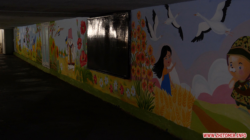 На облаштування кошти виділив департамент освіти, більше ніж 500 тисяч грн. Нині роботи тривають в обох укриттях. В одному з них, де будуть маленькі учні, бачимо патріотичні малюнки. Тут і червона калина, і пес Патрон, і літаки, наші, українські. Директорка каже: роблять все, аби дітям було комфортно.