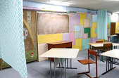 «Це гостьова кімната, у якій можна отримати психологічну допомогу. Вона облаштована так, аби дітям було тепло, зручно і затишно. У цьому приміщенні може розміститися чотири класи. Чотири дошки бачите, і ось такими зонами буде чотири класи, якщо є потреба, щоб діти не заглядали один до одного ми вигадали ось такі шторки», - розповідає та показує дві кімнати директор школи Наталія Міненко.