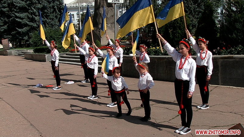 Долучитися та намалювати патріотичний малюнок міг будь-хто. На майдані Корольова також влаштували показ театральної постановки «Символи України». Діти декламували патріотичні вірші, танцювали та співали.