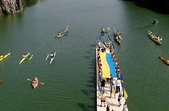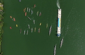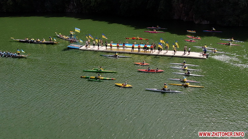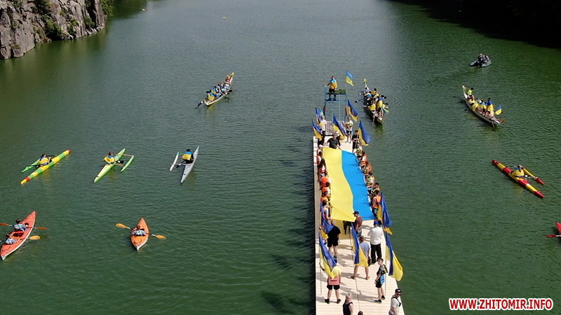 З нагоди свята спортсмени влаштували патріотичний заплив. Вони пливли на пантоні, аутригерах, байдарках та каное з велетенським та маленькими прапорами України.