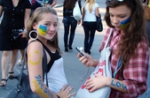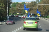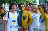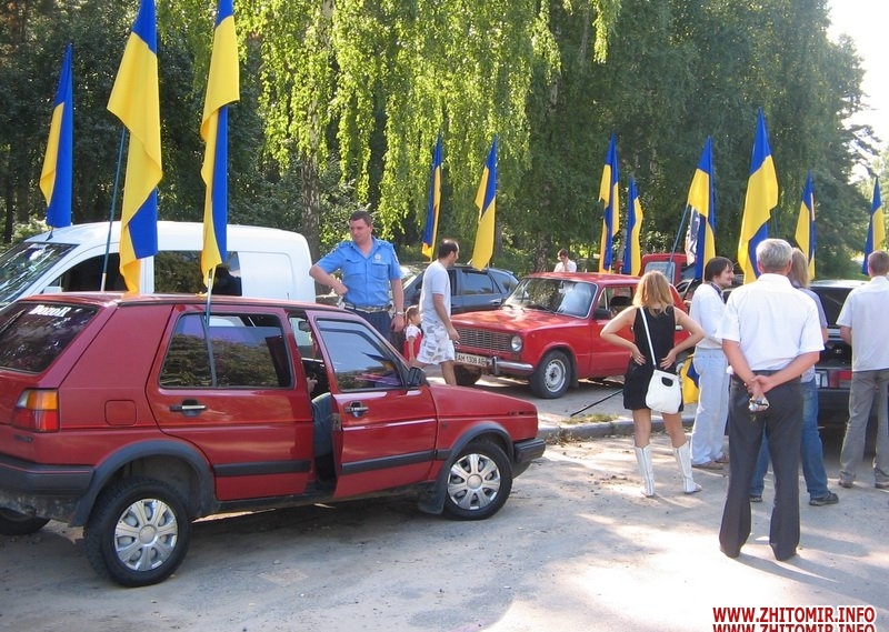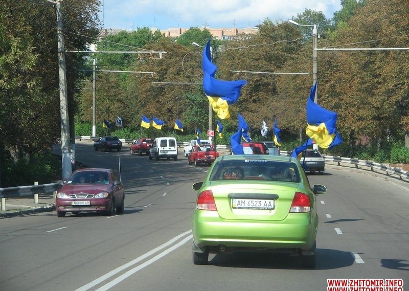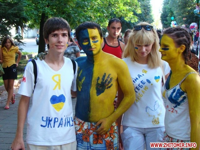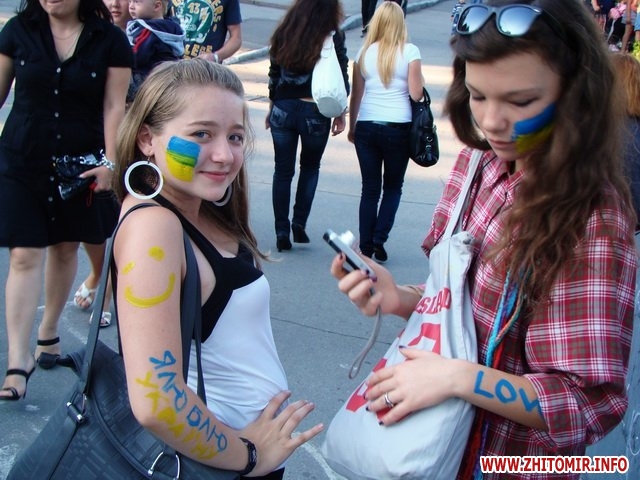 Цього ж дня житомиряни долучилися до всеукраїнського автопробігу з національними прапорами, а молодь у парку Гагаріна розмальовувала себе синім та жовтим.