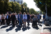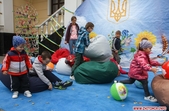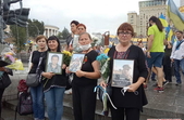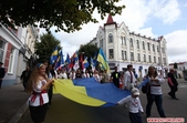 Святкова хода з великим українським прапором від пам’ятника Шевченку до майдану Корольова, де створили «живу карту» України.