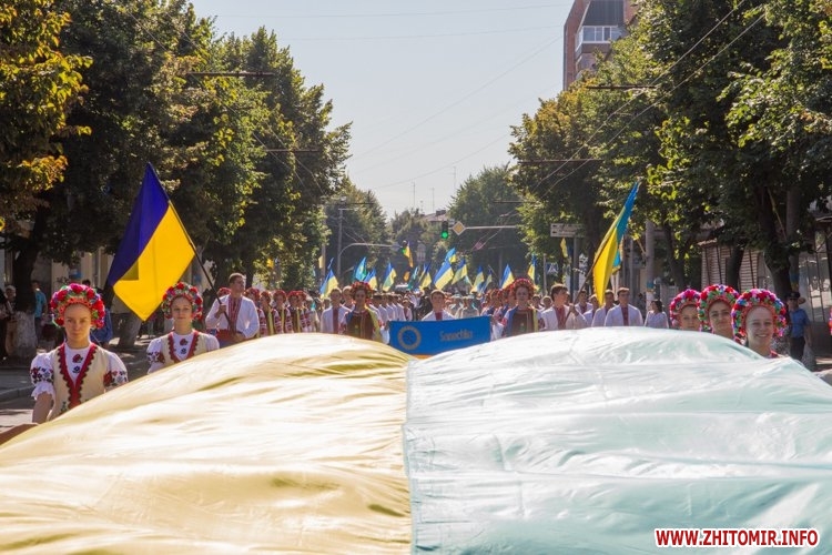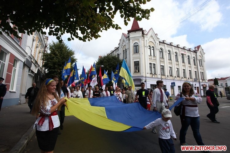 Кілька сотень житомирян долучилися до святкової ходи в центрі міста, байкери знову проїхали містом з національними прапорами, а в гідропарку анонсували фестиваль електронної музики.