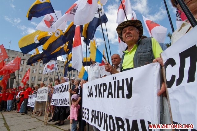 У центрі Житомира на майдані Корольова пройшов мітинг опозиційних сил, де представники політичних опозиційних сил, що нещодавно увійшли до Комітету опору диктатурі, проголосили резолюцію, у якій вимагають: одночасно провести дострокові парламентські та президентські вибори; припинити незаконне переслідування та звільнити з під варти Юлію Тимошенко та Юрія Луценка; скасувати рішення влади, що погіршують соціально-економічне становище громадян; мораторій на продаж землі; мораторій на укладення міждержавних угод, які б передбачали відчуження державного майна і делегування суверенітету.