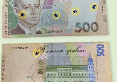 На сьогодні до Національного банку надійшли на дослідження від банків вилучені з обігу навмисно пошкоджені банкноти гривні з трьома-чотирма просвердленими отворами. Найімовірніше, йдеться про викрадення такої готівки з відділень українських банків, що знаходяться на тимчасово окупованих територіях України, та її поширення в готівковому обігу з метою дестабілізації ситуації у фінансовій сфері.