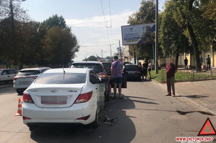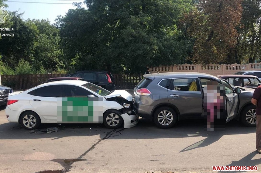 У Житомирі на вулиці Покровській 27 серпня сталася дорожньо-транспортна пригода за участю автомобілів Hyundai, Nissan та Mercedes. У ДТП ніхто не постраждав, а транспортні засоби отримали механічні пошкодження.