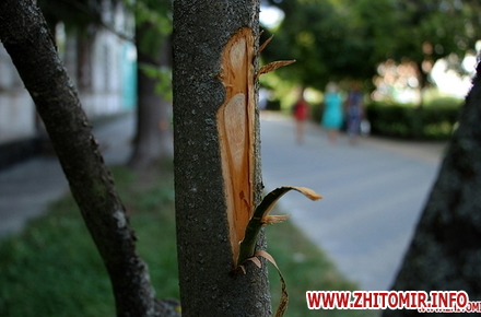 Як повідомляв Житомир.info, наприкінці серпня 2022 року в Житомирі почали виявляти навмисне пошкоджені дерева: так, 26 серпня зарубки на деревах помітили в міському парку, а 28 серпня ідентичні пошкодження працівники КП «Зеленбуд» виявили по вулиці Небесної Сотні та в сквері на Лятошинського, де дії вандала зафіксували камери відеоспостереження.